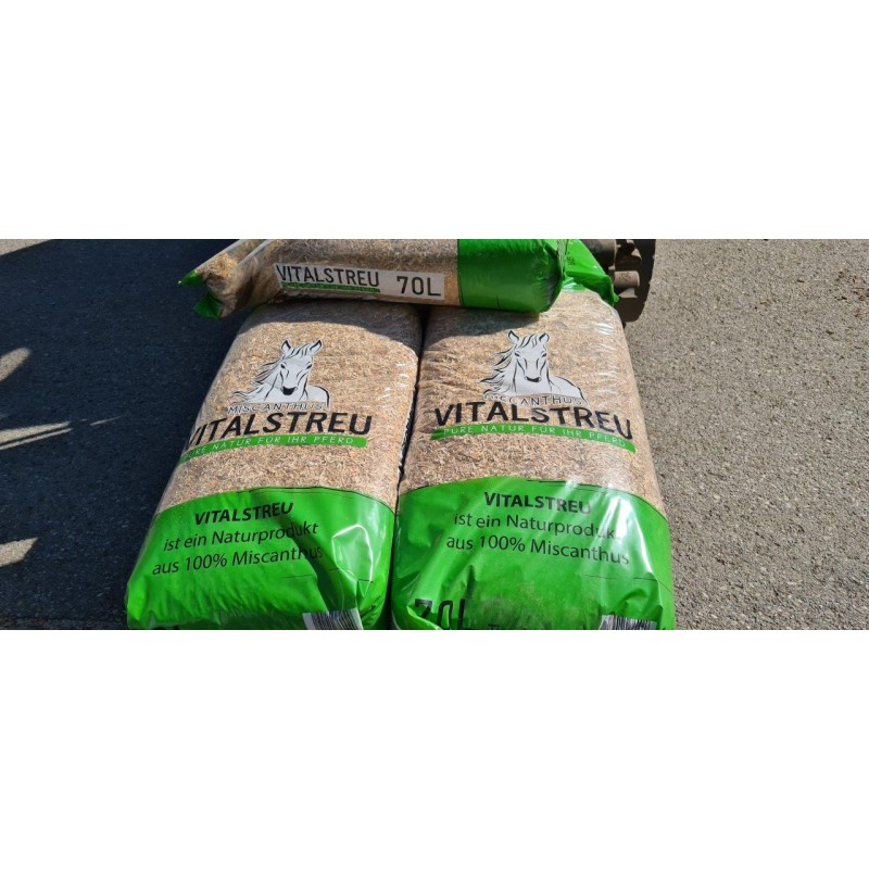 Vitalstreu ist eine Einstreu für Pferde, welches aus Miscanthus besteht. Es wird mit Druck und Wärme behandelt, dadurch wird es großteils thermisch entkeimt und die Dichte auf 400kg/m³ erhöht! Dies spart Kosten bei Transport und Lagerung. Durch die Druckbehandlung werden die Zellen aufgebrochen und die Saugfähigkeit um 50% erhöht. Der aus VITALSTREU entstanden Pferdemist wird zu einem hervorragenden Dünger. Pferdemist aus Sägespänen und Sägemehl versauert den Boden!!